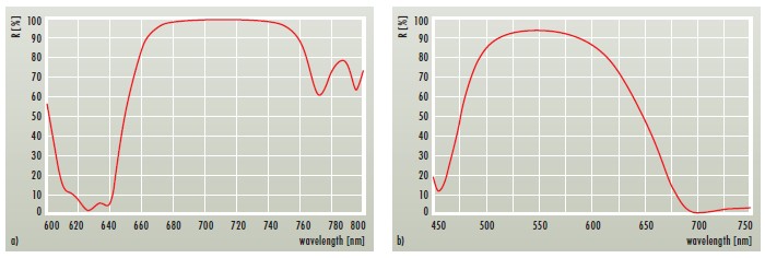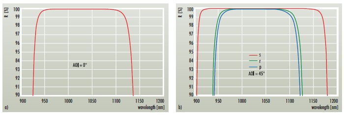 图1:HR腔镜(a)和HR转向镜(b)的反射光谱