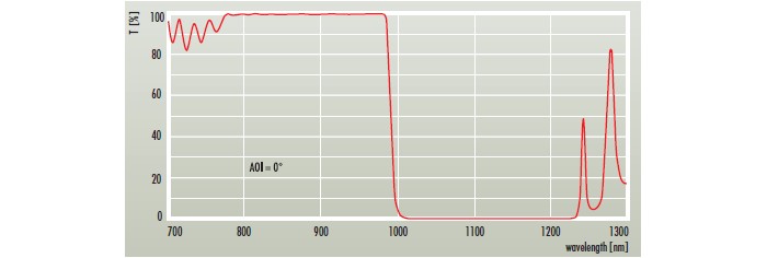 图3:具有HR(0,915-980nm)> 99.8%的陡边长波长通过滤波器的透射光谱