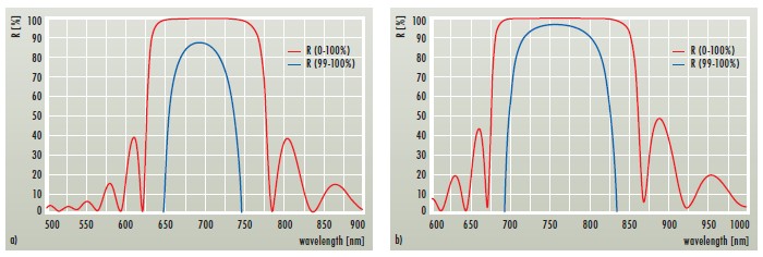 图1:694nm(a)和755nm(b)的腔镜的反射光谱