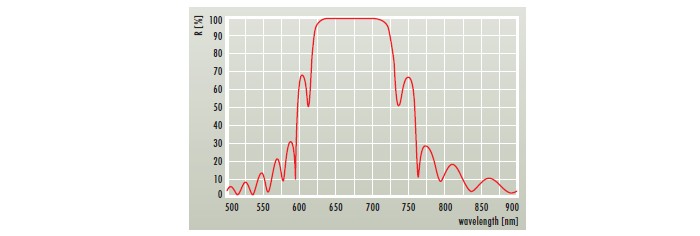 图2:694nm的转向镜与633nm的导频激光器(非偏振光)的反射光谱