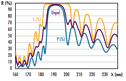 图 11: 使用分光光度计捕获的 TECHSPEC® 准分子激光镜样本反射率光谱