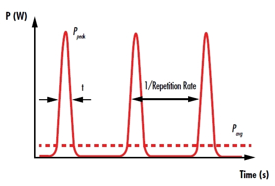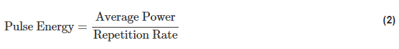 脉冲激光器以给定重复频率发射激光能量的离散脉冲(图 3)。每个脉冲的能量与平均功率成正比,与激光器的重复频率成反比(图 4)。