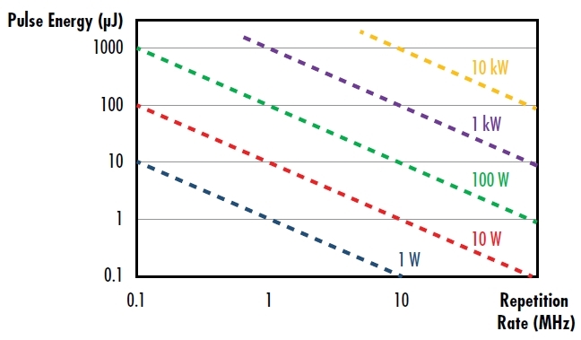 图 4: 描述取决于脉冲激光器在给定平均功率下的重复率的脉冲能量