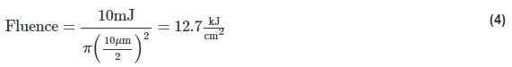 例如,脉冲能量为 10mJ,脉冲持续时间为 10ns,光束直径为 10ns 的Q 开关(脉冲)激光器将具有以下能量密度: