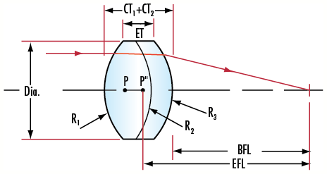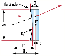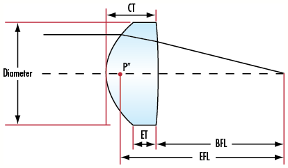 ET | 边缘厚度 – 一个计算值,取决于透镜的半径、直径和中心厚度。 |