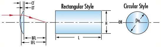 | 由一个平面和一个向内弯曲的表面组成。 非常适合光束扩展、光投射和扩展光学系统的焦距。 |