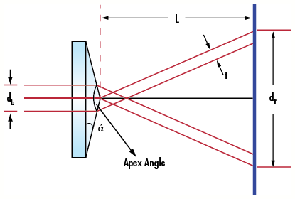 | 非常适合将激光聚焦成具有恒定厚度的环。 注意:较小的顶角产生较大的环。 |