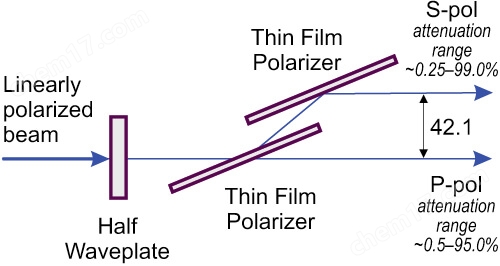 通过旋转波片,可以在不改变其他光束参数的情况下连续改变这两个分离且不同的偏振光束的强度比。可以在宽的动态范围内控制任一出射光束的强度或它们的强度比。可以选择P偏振用于最大透射,或者当发生透射光束的最大衰减时,可以反射高纯度的S偏振。