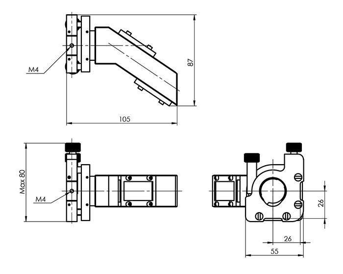 光轴距台面高度可在78~88mm范围内调节。可以提供其他高度作为定制,将标准杆和杆固定器改为更高。