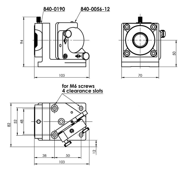 840-0056-12运动学支架允许将薄膜布儒斯特型偏振器的入射角(Aoi)调整±4.5°,并获得最大消光对比度。安装件位于杆、杆固定器和可移动底座820-0090上。