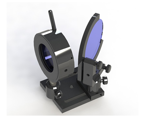 该可变衰减器/分束器由直径76.2mm的UV FS薄膜Brewster型偏振器和直径40mm的石英多级半波片组成,该薄膜Brewster型偏振器反射s-偏振光而透射p-偏振光,并容纳在分束器支架840-0056-13中,该石英多级半波片容纳在旋转偏振器支架840-0180-A2中,并放置在入射的线性偏振激光束中。